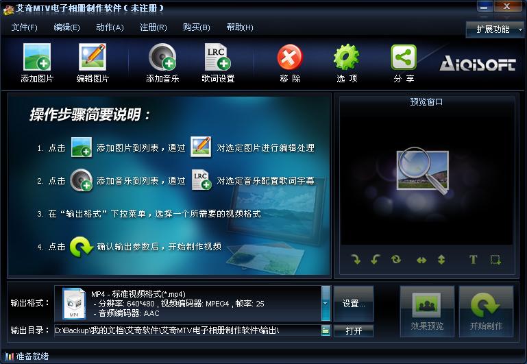 《艾奇MTV电子相册制作软件》可以把音乐加上LRC歌词配上照片做成MTV一样的电子相册视频。